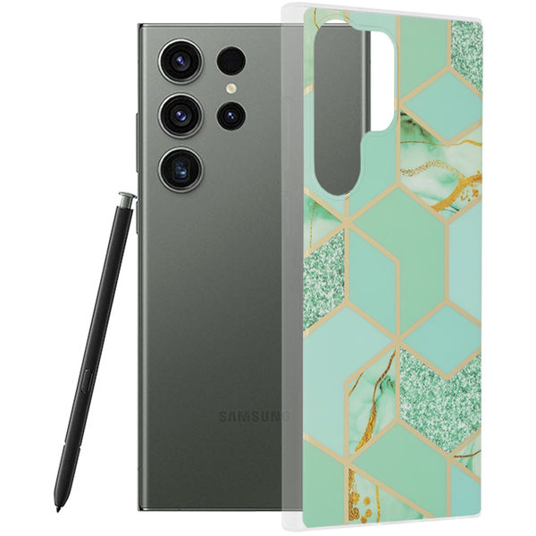 Techsuit - Marble Series - Samsung Galaxy S23 Ultra - Green Hex Samsung Galaxy S23 Ultra