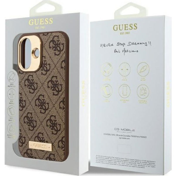 Guess - Hardcase 4G Logo Plate MagSafe (GUHMP16MU4GPRW) - iPhone 16 Plus - Brown Apple iPhone 16 Plus