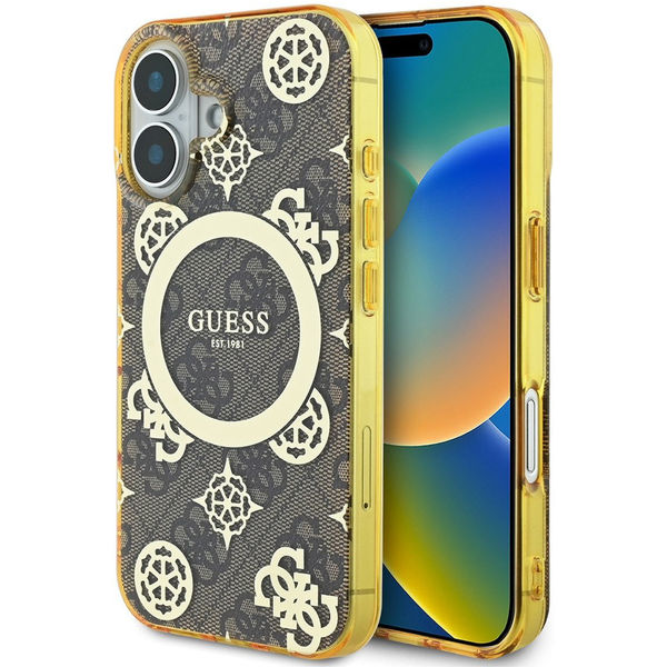 Guess - IML Peony On 4G Background MagSafe (GUHMP16SH4PYEEW) - iPhone 16 - Brown Apple iPhone 16