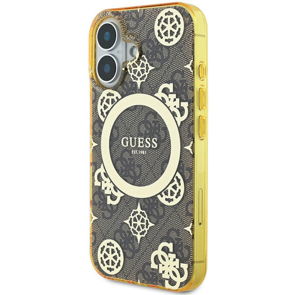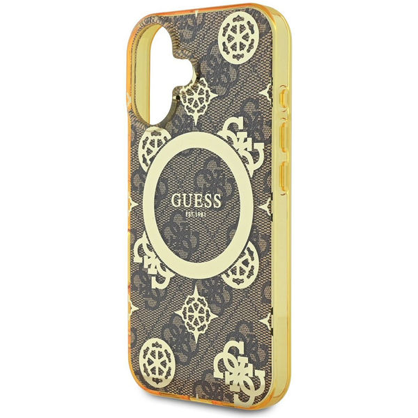 Accesoriu Guess - IML Peony On 4G Background MagSafe (GUHMP16SH4PYEEW) - iPhone 16 - Brown pentru Apple iPhone 16