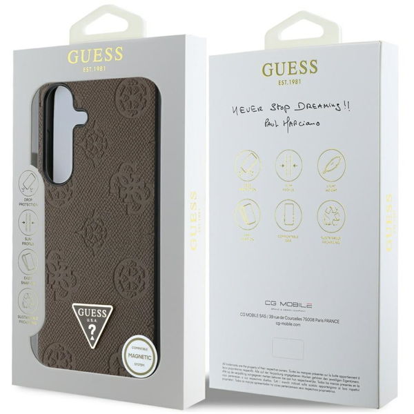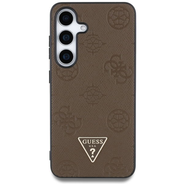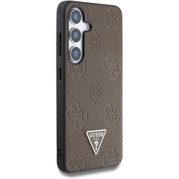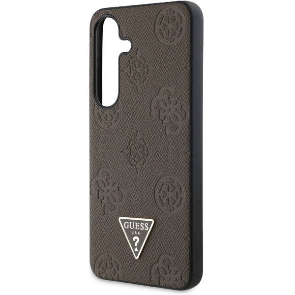 Accesoriu Guess - Peony Grained Hot Stamp Triangle Logo MagSafe (GUHMS25SPGBTMW) - Samsung Galaxy S25 - Brown pentru Samsung Galaxy S25