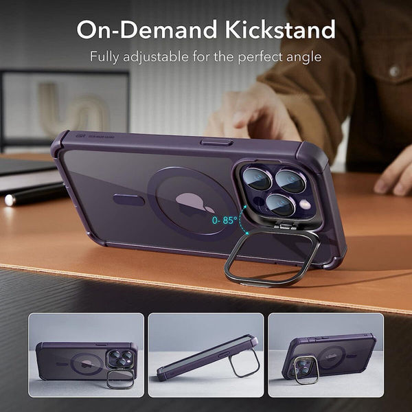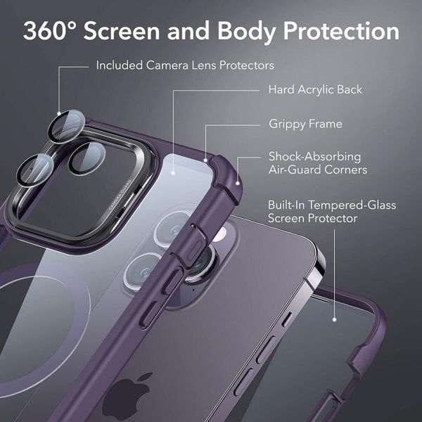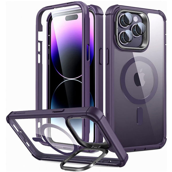 ESR - Shock Armor Kickstand HaloLock + Screen Protector - iPhone 14 Pro Max - Clear Purple Apple iPhone 14 Pro Max