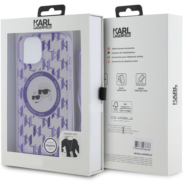 Karl Lagerfeld - IML Crossbody MagSafe (KLHMP15SHCKCKLCU) - iPhone 15 - Purple Mono Karl&Choupette Apple iPhone 15