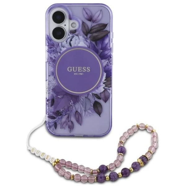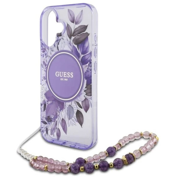 Alte variante pentru Guess - IML Flowers with Pearl Strap MagSafe (GUHMP16MHFWBRCESU) - iPhone 16 Plus - Purple