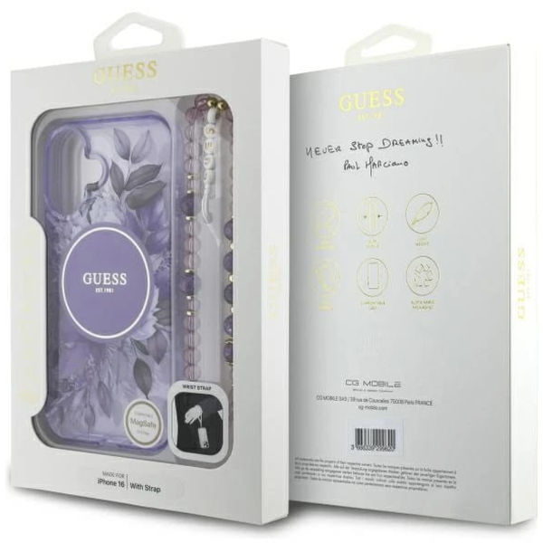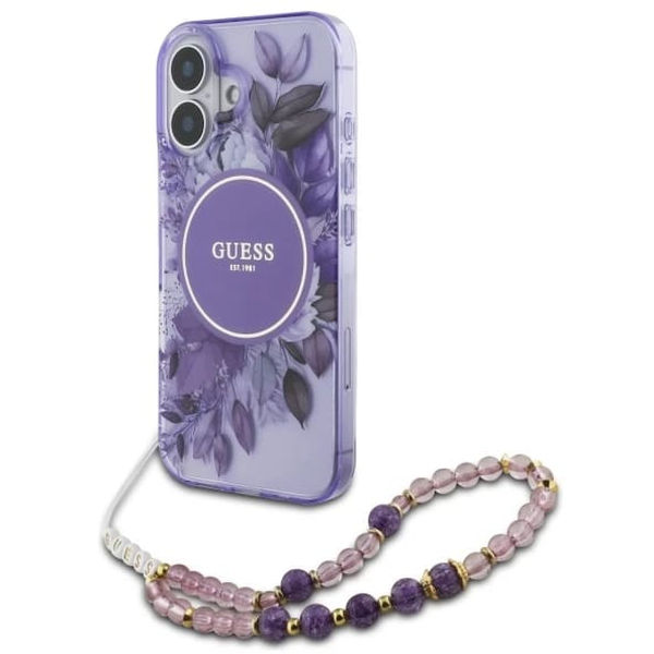 Alte variante pentru Guess - IML Flowers with Pearl Strap MagSafe (GUHMP16SHFWBRCESU) - iPhone 16 - Purple