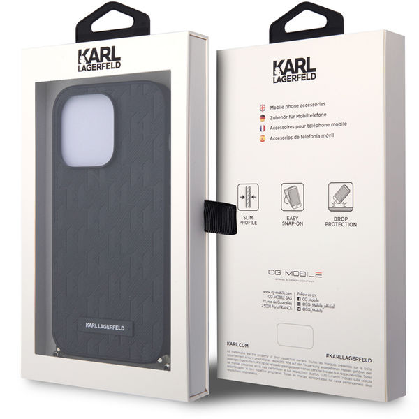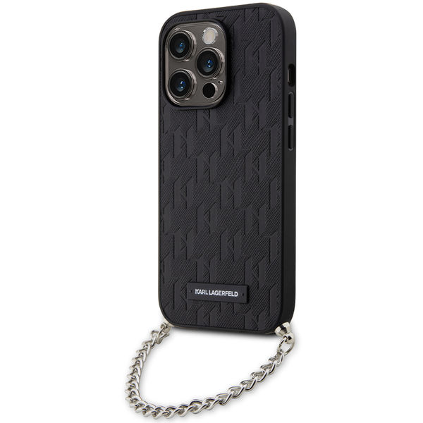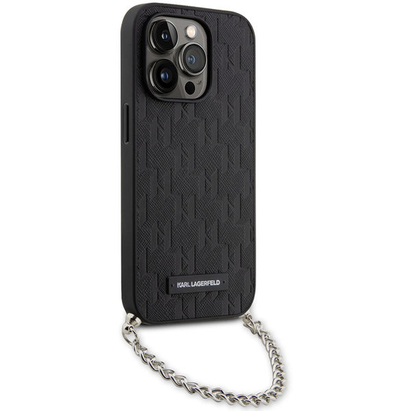 Karl Lagerfeld - Saffiano Monogram Chain (KLHCP14LSACKLHPK) - iPhone 14 Pro - Black Apple iPhone 14 Pro