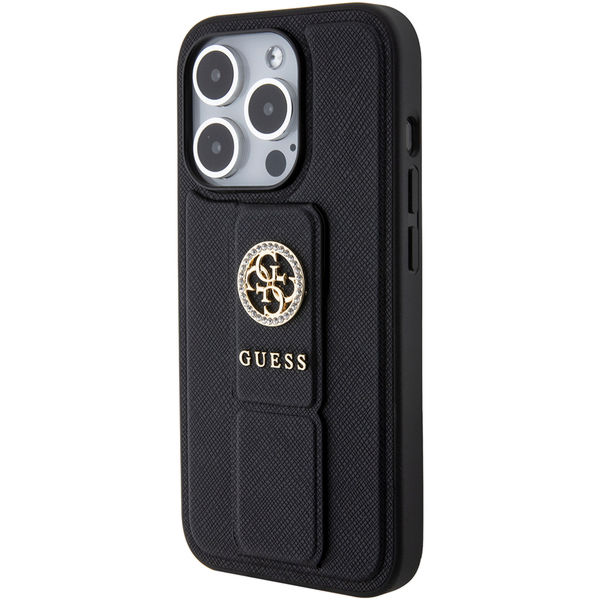 Guess - Grip Stand 4G Saffiano Strass (GUHCP15LPGSSADK) - iPhone 15 Pro - Black Apple iPhone 15 Pro