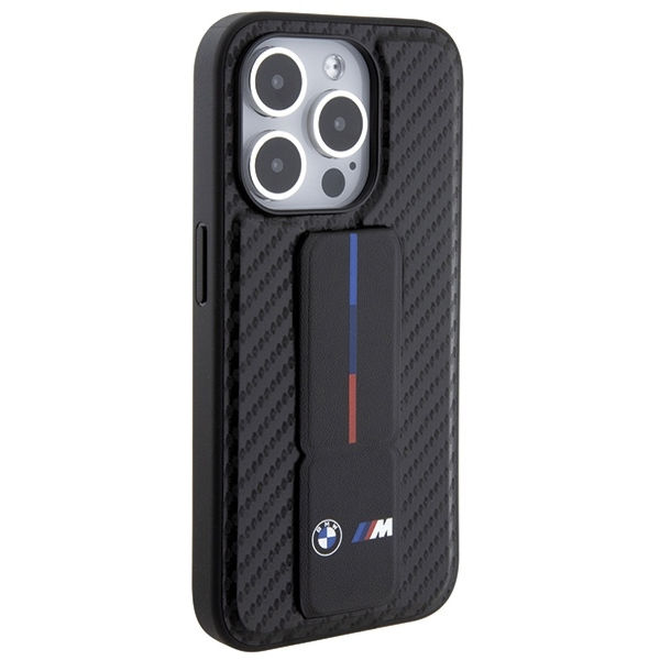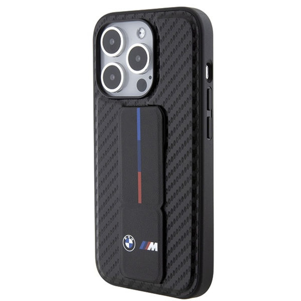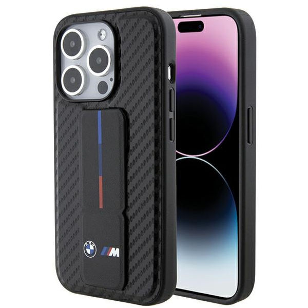 BMW - Leather Grip Stand Smooth & Carbon (BMHCP15LGSPCCK) - iPhone 15 Pro - Black Apple iPhone 15 Pro