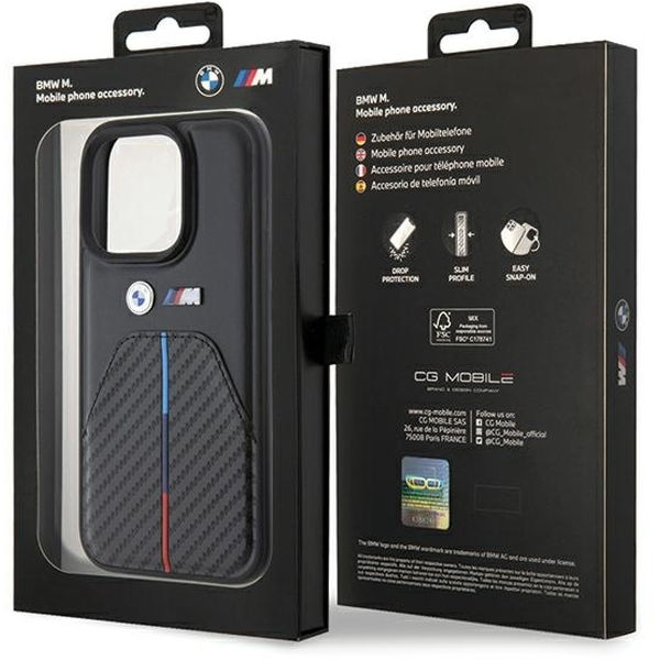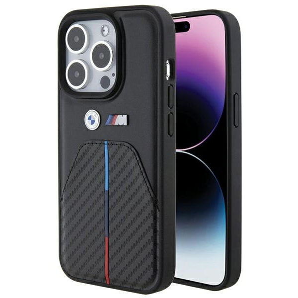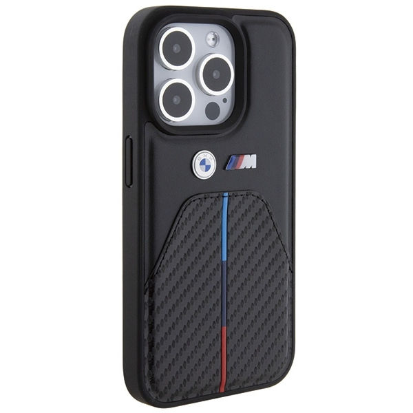Accesoriu BMW - Leather Stamped Tricolor Stripe (BMHCP15L22NSTB) - iPhone 15 Pro - Black pentru Apple iPhone 15 Pro