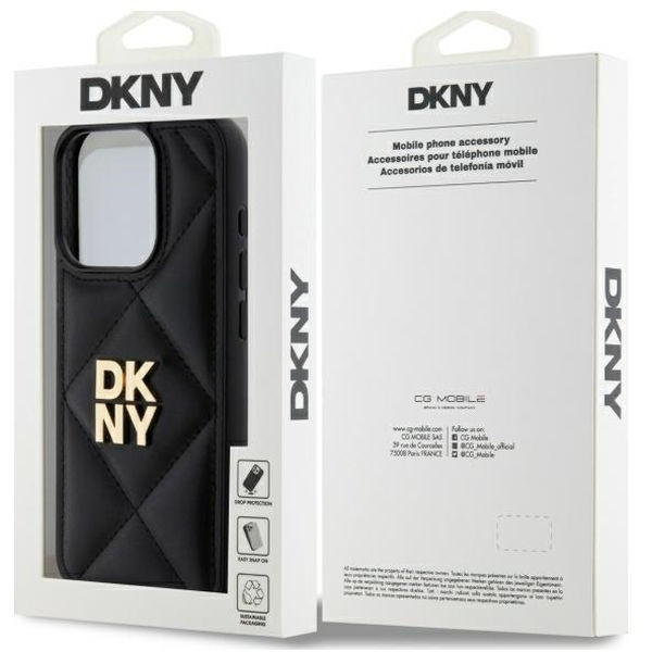 DKNY - Leather Quilted Stack Logo (DKHCP15LPQDSLK) - iPhone 15 Pro - Black Apple iPhone 15 Pro