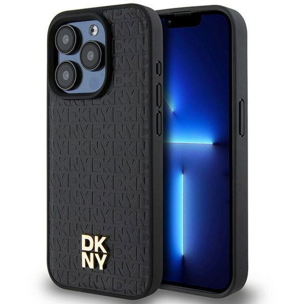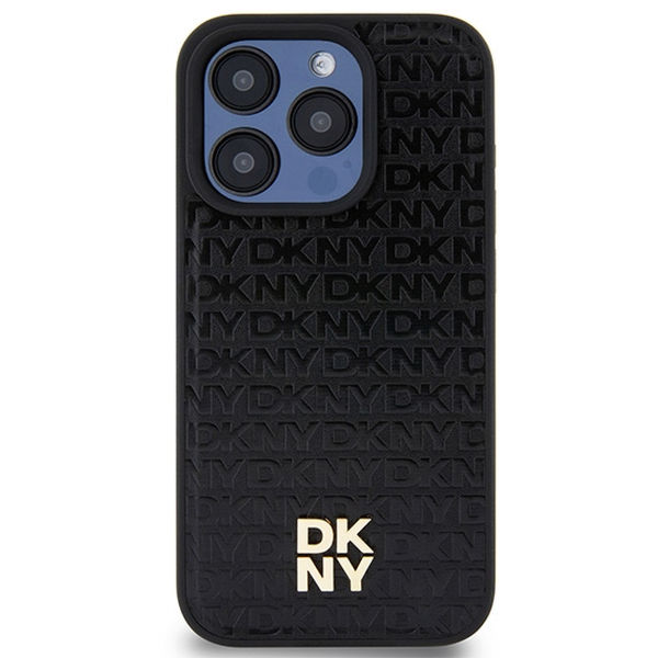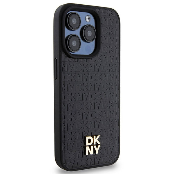 DKNY - Leather Pattern Monogram Metal Logo MagSafe (DKHMP15LPSHRPSK) - iPhone 15 Pro - Black Apple iPhone 15 Pro