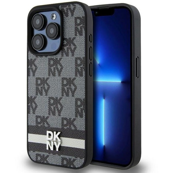 DKNY - Leather Checkered Mono Pattern & Printed Stripes (DKHCP15LPCPTSSK) - iPhone 15 Pro - Black Apple iPhone 15 Pro