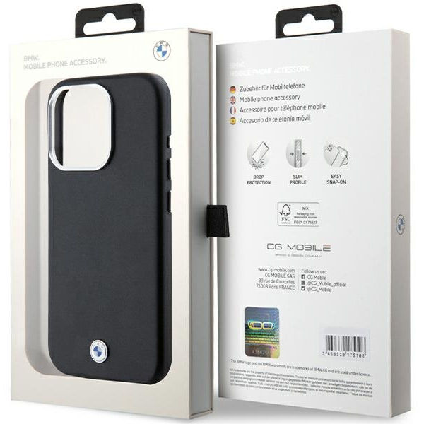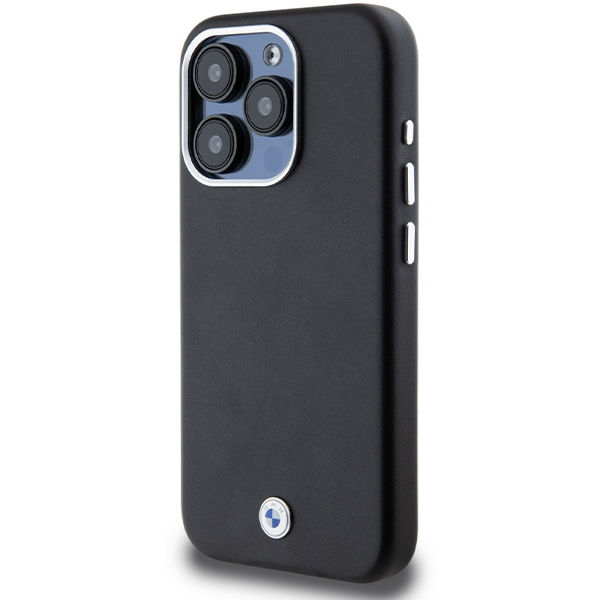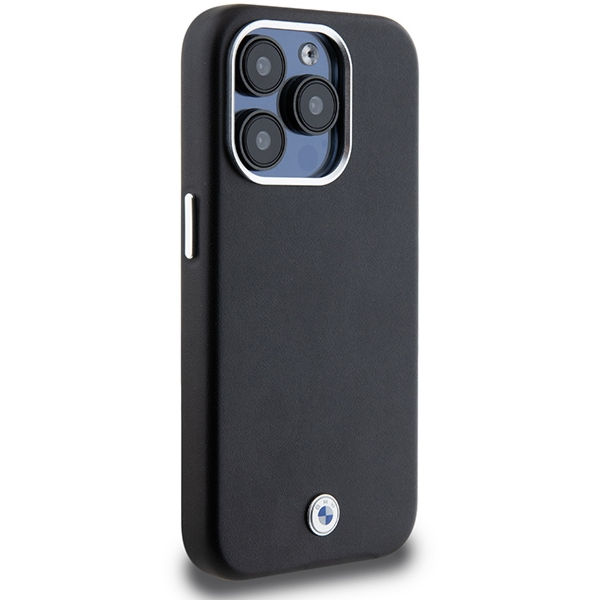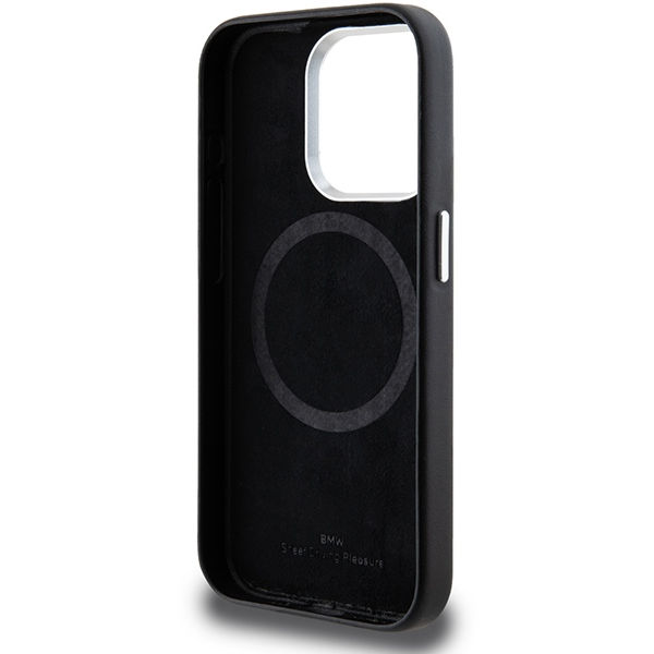 BMW - Leather Signature Wrapped Metal MagSafe (BMHMP15L23PUFWK) - iPhone 15 Pro - Black Apple iPhone 15 Pro