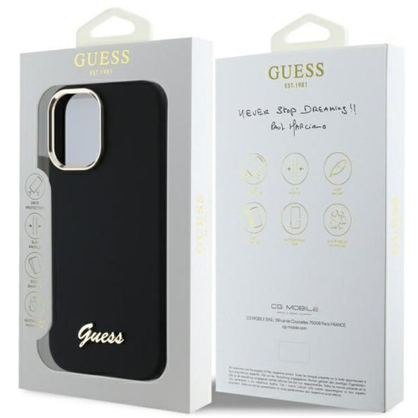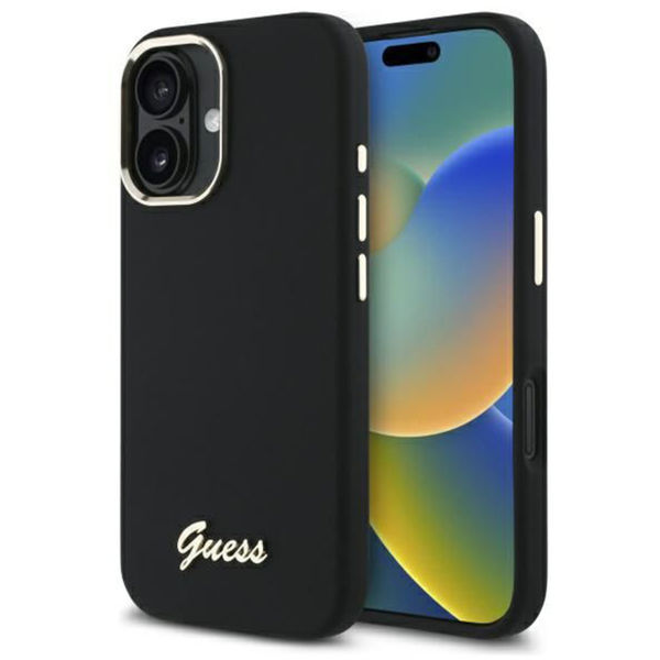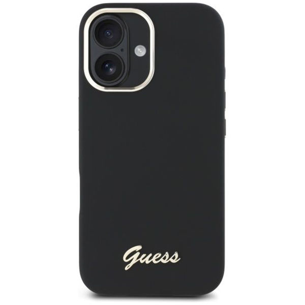 Guess - Silicone Script Metal Logo & Frame (GUHCP16MSMBSLK) - iPhone 16 Plus - Black Apple iPhone 16 Plus