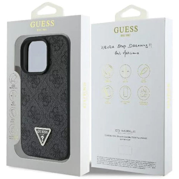 Guess - Leather 4G Triangle Strass (GUHCP16XP4TDPK) - iPhone 16 Pro Max - Black Apple iPhone 16 Pro Max