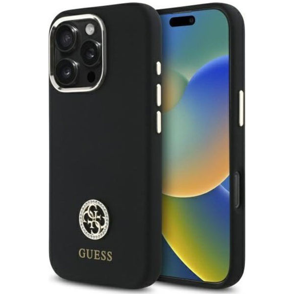 Guess - Silicone Logo Strass 4G (GUHCP16XM4DGPK) - iPhone 16 Pro Max - Black Apple iPhone 16 Pro Max