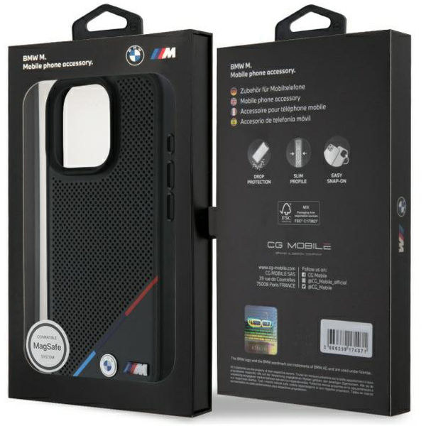 BMW - Hardcase M Perforated Tricolor Line MagSafe (BMHMP16X23PUPDK) - iPhone 16 Pro Max - Black Apple iPhone 16 Pro Max