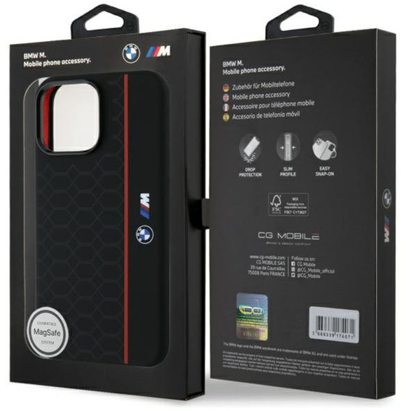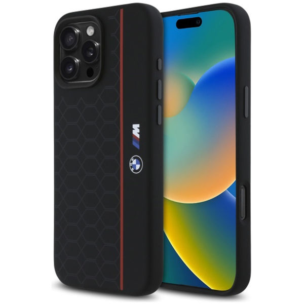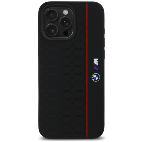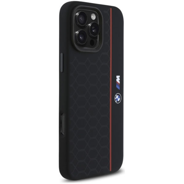BMW - Hardcase Silicone Hexagon Red Line MagSafe (BMHMP16X23SHER) - iPhone 16 Pro Max - Black Apple iPhone 16 Pro Max