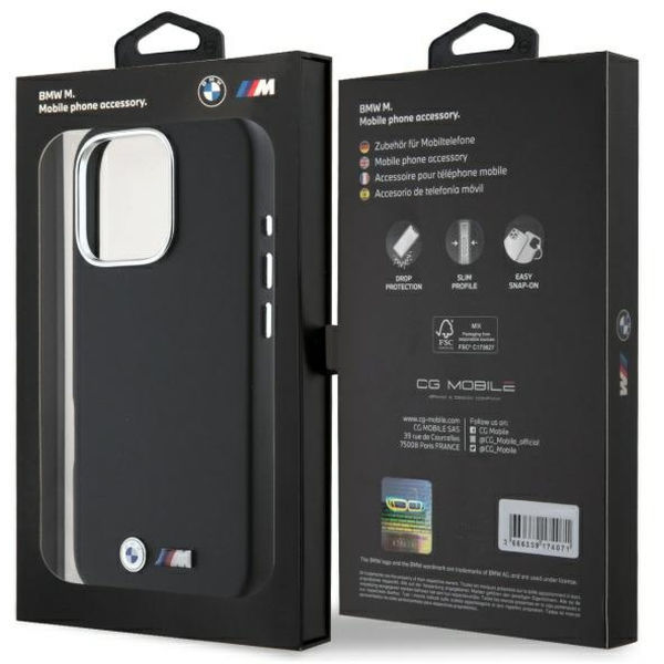 Accesoriu BMW - Leather M Smooth Full Wrapped Metal (BMHCP16X23PMWK) - iPhone 16 Pro Max - Black pentru Apple iPhone 16 Pro Max