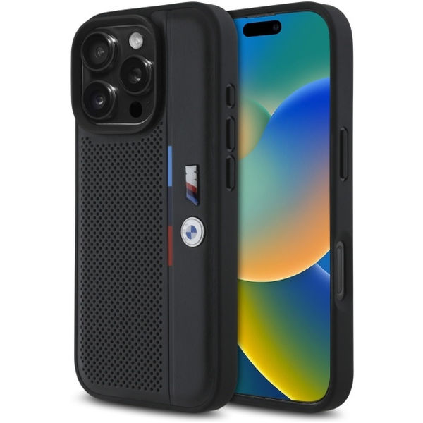 BMW - Hardcase M Perforated Tricolor Detail Line (BMHCP16X23PUPVK) - iPhone 16 Pro Max - Black Apple iPhone 16 Pro Max