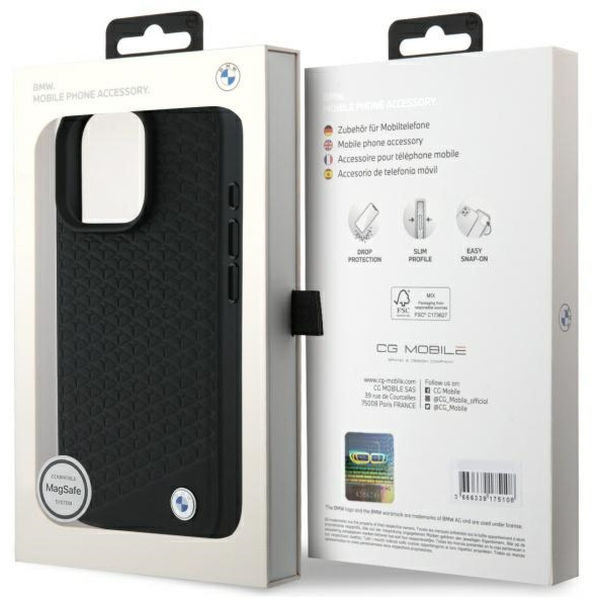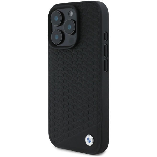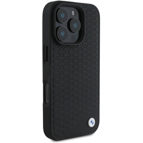 BMW - Signature Leather Diamond Metal Logo MagSafe (BMHMP16L23RDDK) - iPhone 16 Pro - Black Apple iPhone 16 Pro