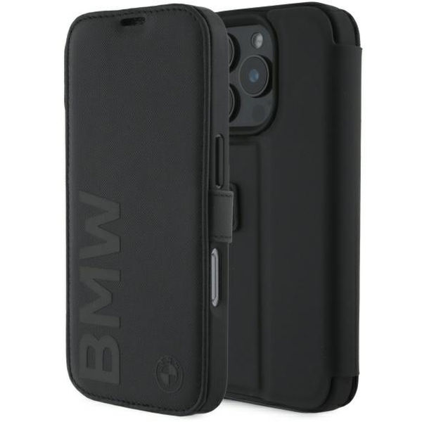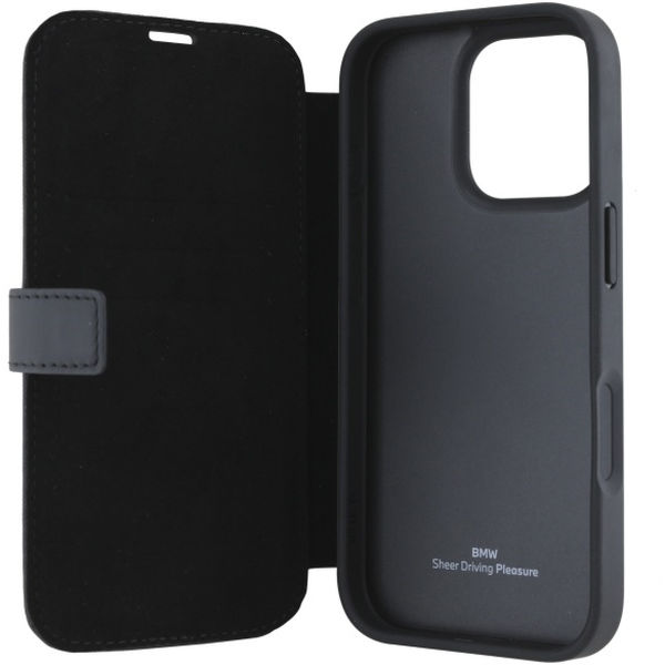 BMW - Signature Leather Wordmark Bookcase (BMBKP16L23RMRLK) - iPhone 16 Pro - Black Apple iPhone 16 Pro