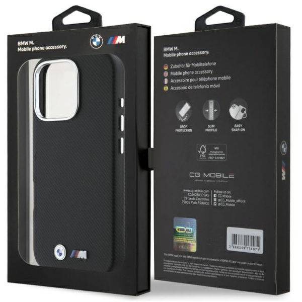 Accesoriu BMW - Leather M Edition Kevlar wrapped metal (BMHCP16L23PUFWKEV) - iPhone 16 Pro - Black pentru Apple iPhone 16 Pro