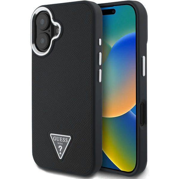Guess - Grained Triangle MagSafe (GUHMP16SPGTSPSK) - iPhone 16 - Black Apple iPhone 16