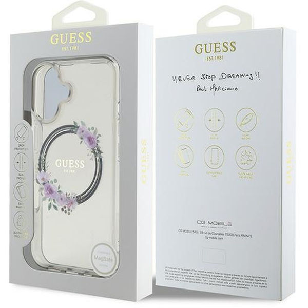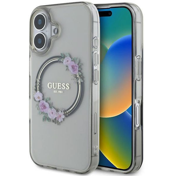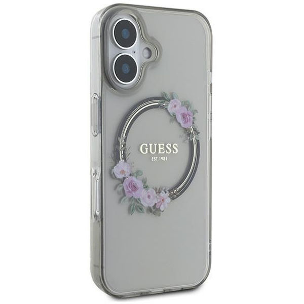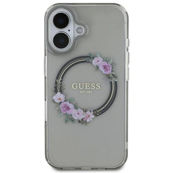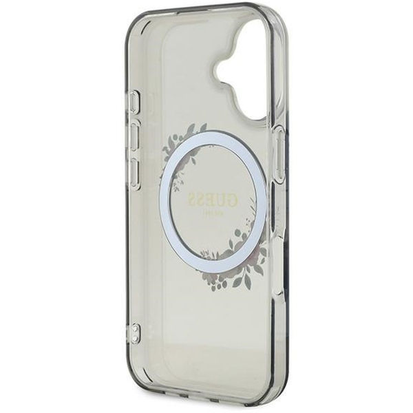 Guess - IML Flowers Wreath MagSafe (GUHMP16SHFWFCK) - iPhone 16 - Black Apple iPhone 16