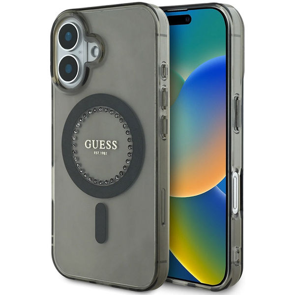 Guess - IML Rhinestones MagSafe (GUHMP16SPFTDTEK) - iPhone 16 - Black Apple iPhone 16
