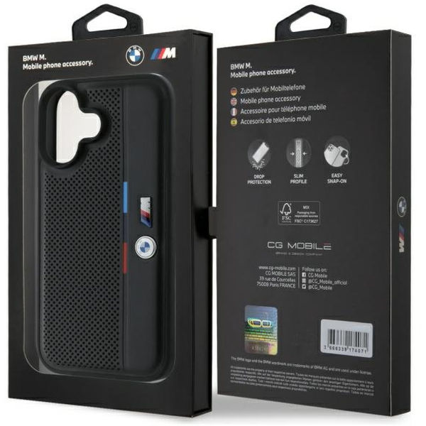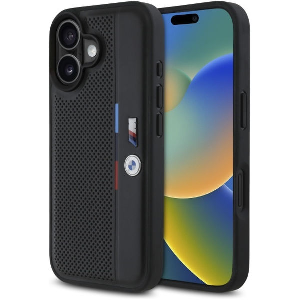 BMW - Hardcase M Perforated Tricolor Detail Line (BMHCP16S23PUPVK) - iPhone 16 - Black Apple iPhone 16
