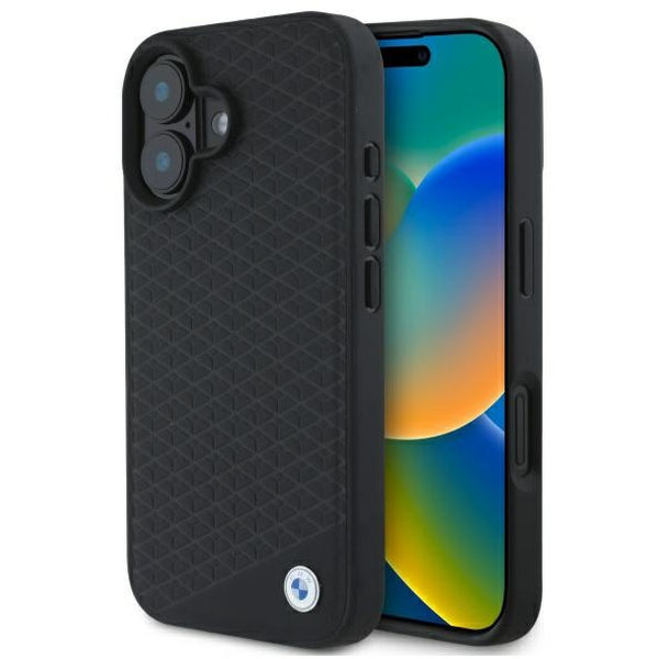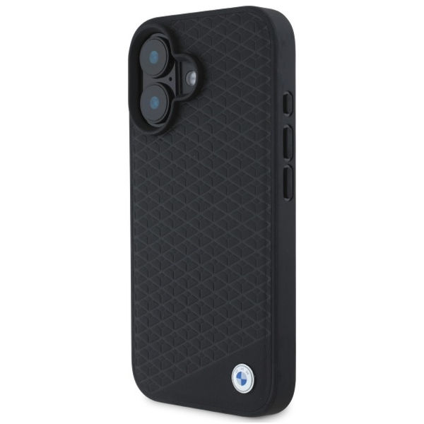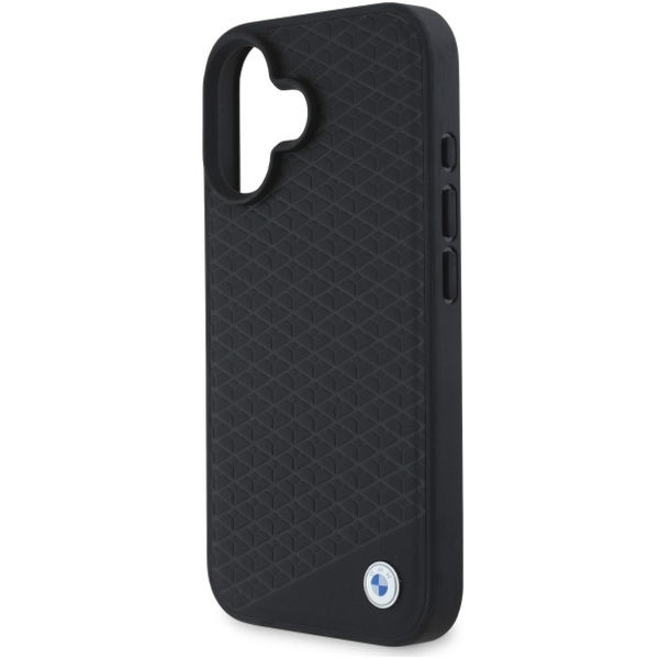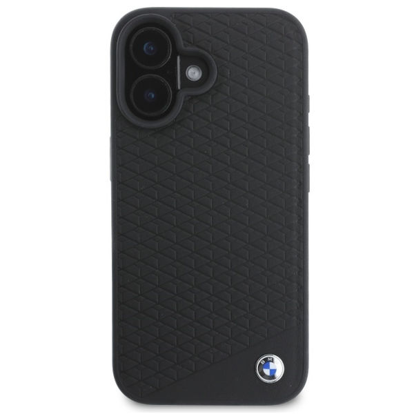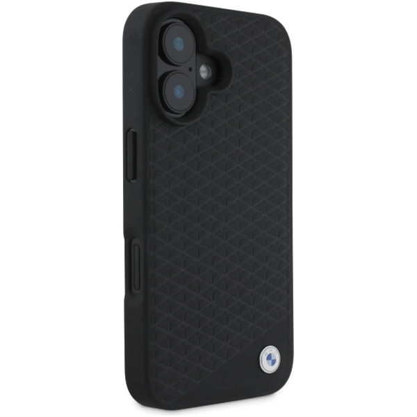 BMW - Signature Leather Diamond Metal Logo MagSafe (BMHMP16S23RDDK) - iPhone 16 - Black Apple iPhone 16