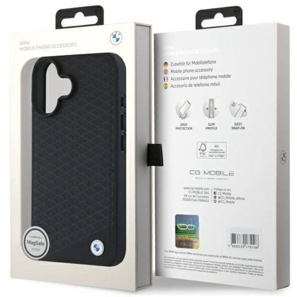 La ClickGSM găsești accesorii dedicate pentru BMW - Signature Leather Diamond Metal Logo MagSafe (BMHMP16S23RDDK) - iPhone 16 - Black, cu garanție de calitate și livrare rapidă pentru modelul Apple iPhone 16.