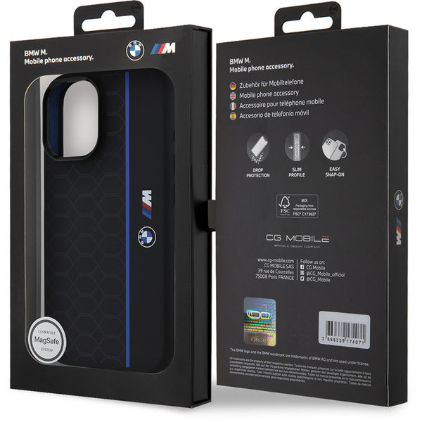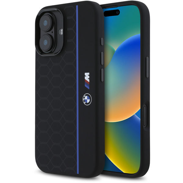 BMW - Hardcase Silicone Hexagon Blue Line MagSafe (BMHMP16S23SHEB) - iPhone 16 - Black Apple iPhone 16