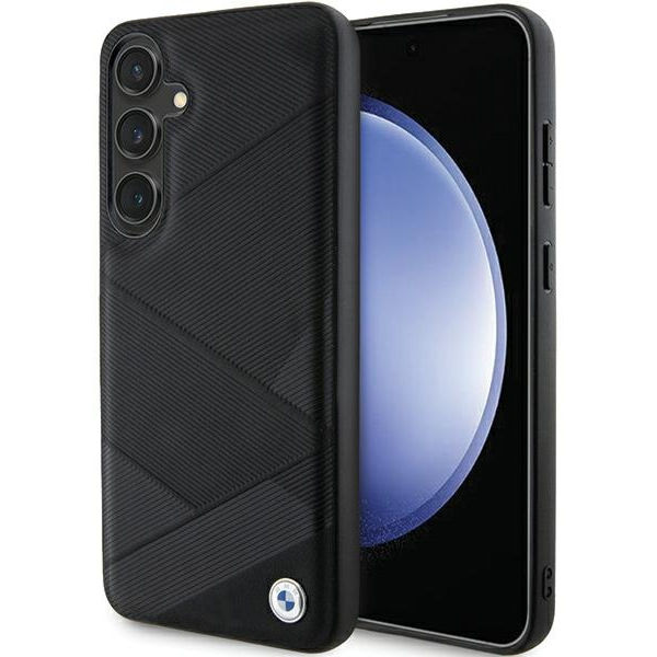 BMW - Natural Signature Leather Crossing Lines Pattern (BMHCS24M23RCGPK) - Samsung Galaxy S24 Plus - Black Samsung Galaxy S24+