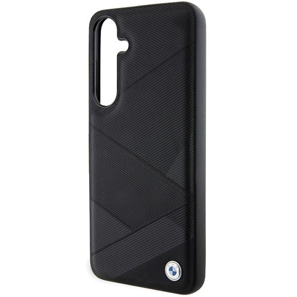 Accesoriu BMW - Natural Signature Leather Crossing Lines Pattern (BMHCS24M23RCGPK) - Samsung Galaxy S24 Plus - Black pentru Samsung Galaxy S24+