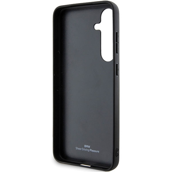 Accesoriu BMW - Natural Signature Leather Crossing Lines Pattern (BMHCS24S23RCGPK) - Samsung Galaxy S24 - Black pentru Samsung Galaxy S24