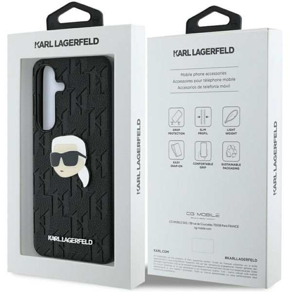 Karl Lagerfeld - Hardcase Monogram Leather (KLHCS25MPGKLKIPK) - Samsung Galaxy S25 Plus - Karl Head Pin Samsung Galaxy S25+