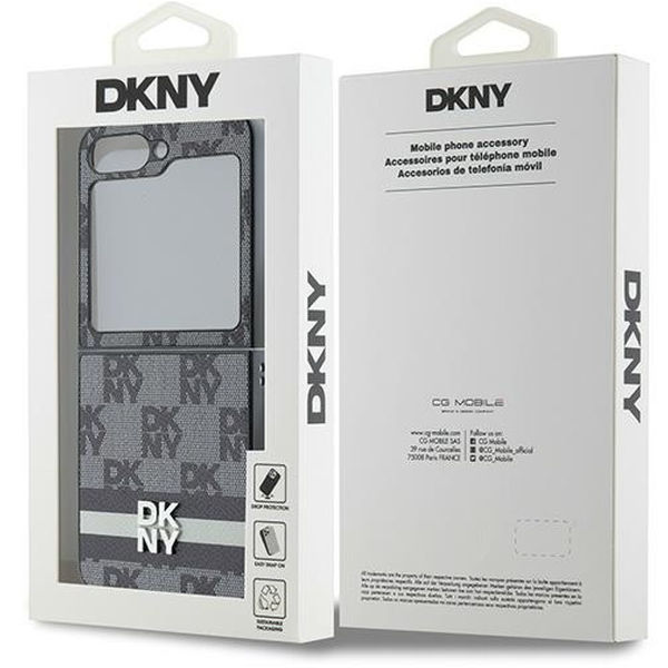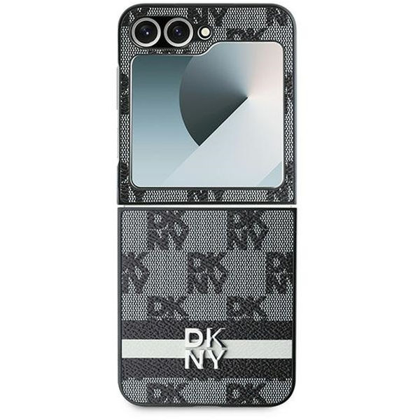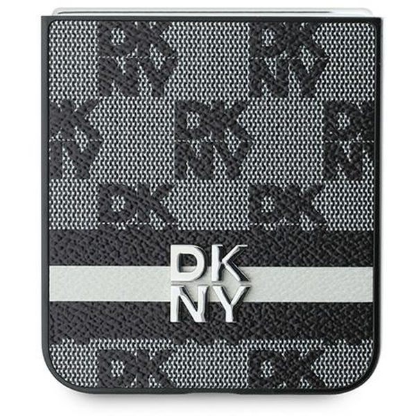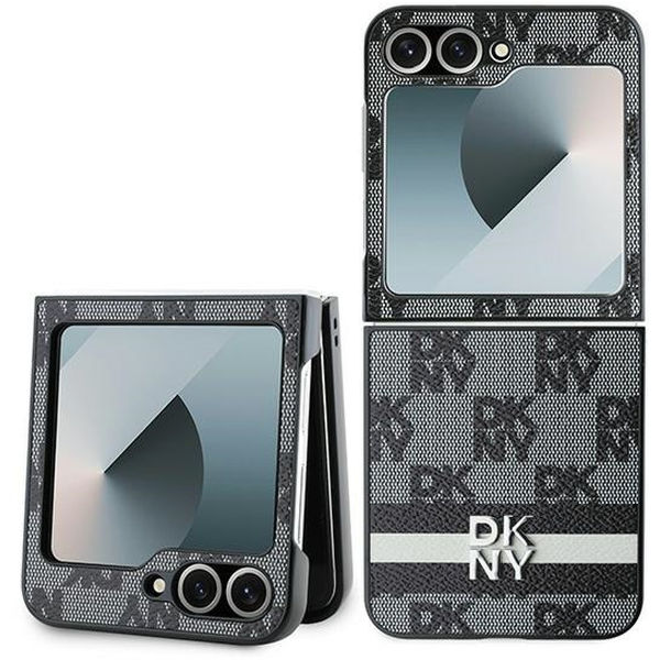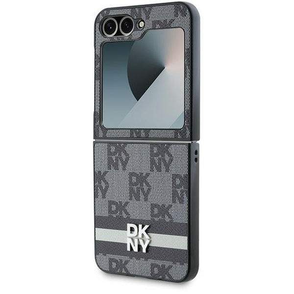 DKNY - Leather Chequered Pattern Printed Stripes (DKHCZF6PCPTSSK) - Samsung Galaxy Z Flip6 - Black Samsung Galaxy Z Flip6