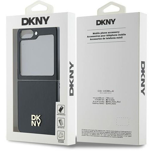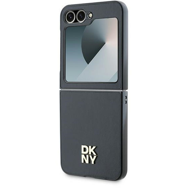 Accesoriu DKNY - Leather Metal Stack Logo (DKHCZF6PSMCSLK) - Samsung Galaxy Z Flip6 - Black pentru Samsung Galaxy Z Flip6
