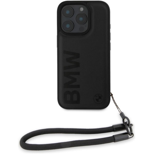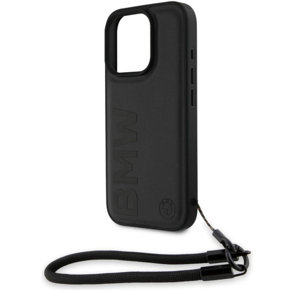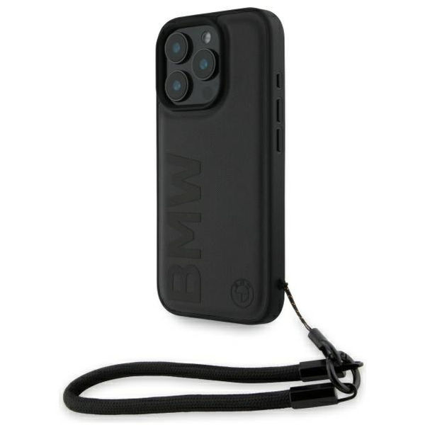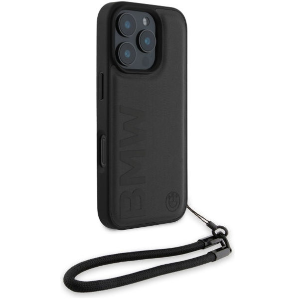 BMW - Signature Leather Wordmark Cord (BMHCP16X23RMRLK) - iPhone 16 Pro Max - Black Apple iPhone 16 Pro Max