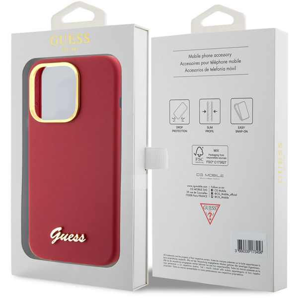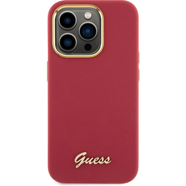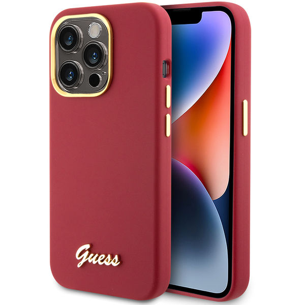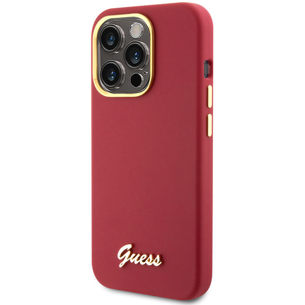 Guess - Silicone Script Metal Logo & Frame (GUHCP15LSMBSLM) - iPhone 15 Pro - Red Apple iPhone 15 Pro