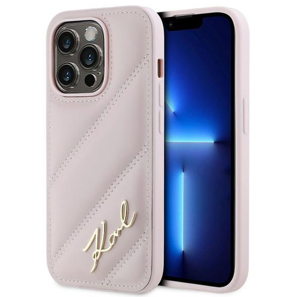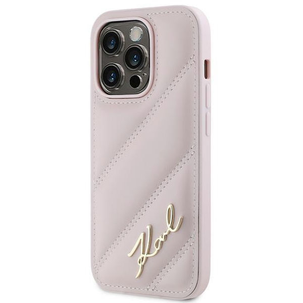 Karl Lagerfeld - Diagonal Quilted Script (KLHCP14XPQDSMGP) - iPhone 14 Pro Max - Pink Apple iPhone 14 Pro Max