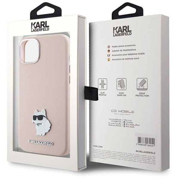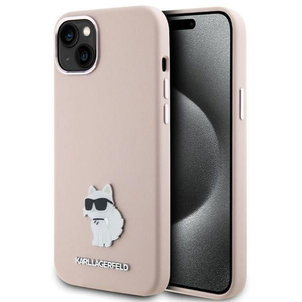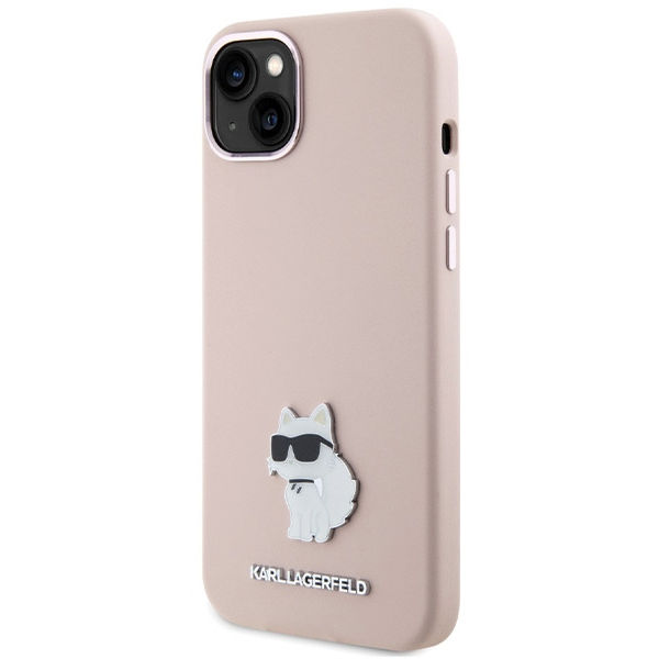 Karl Lagerfeld - Silicone (KLHCP15MSMHCNPP) - iPhone 15 Plus - Pink Choupette Metal Pin Apple iPhone 15 Plus