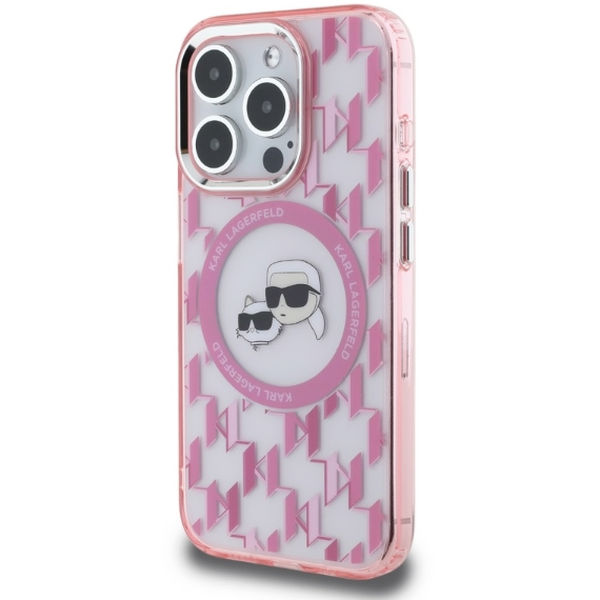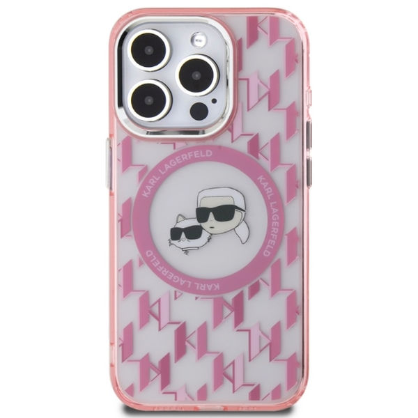 Karl Lagerfeld - IML MagSafe (KLHMP15XHMCKMHP) - iPhone 15 Pro Max - Pink Monogram Karl&Choupette Head Apple iPhone 15 Pro Max