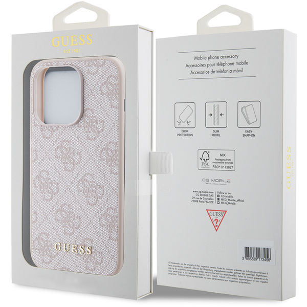 Accesoriu Guess - Hardcase 4G Metal Gold Logo (GUHCP15LG4GFPI) - iPhone 15 Pro - Pink pentru Apple iPhone 15 Pro