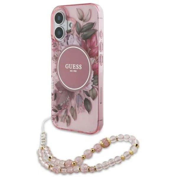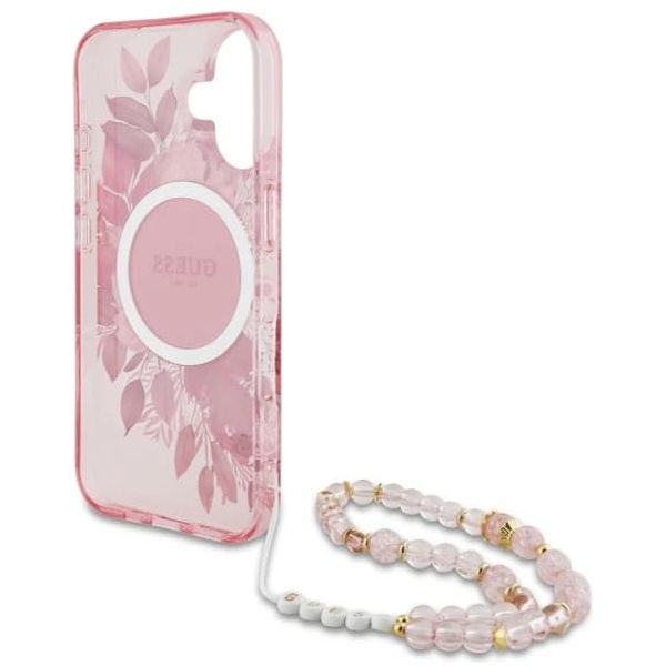 Guess - IML Flowers with Pearl Strap MagSafe (GUHMP16MHFWBRCESP) - iPhone 16 Plus - Pink Apple iPhone 16 Plus