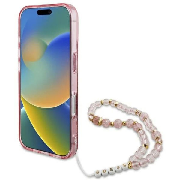 Alte variante pentru Guess - IML Flowers with Pearl Strap MagSafe (GUHMP16MHFWBRCESP) - iPhone 16 Plus - Pink
