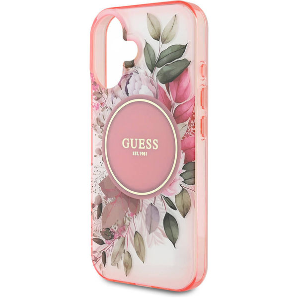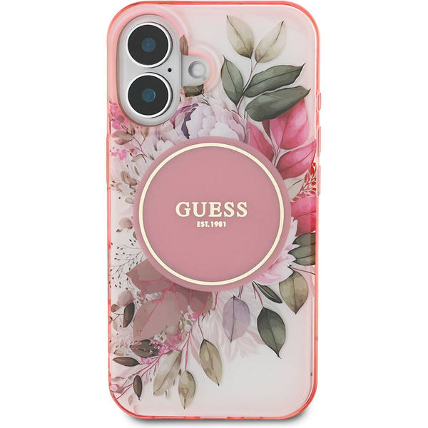 Guess - IML Flower & Tonal Circle MagSafe (GUHMP16SHFWBDCEP) - iPhone 16 - Pink Apple iPhone 16