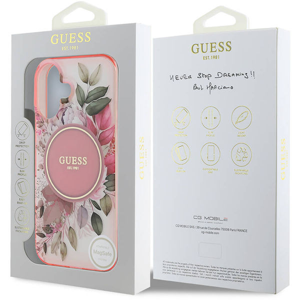 La ClickGSM găsești accesorii dedicate pentru Guess - IML Flower & Tonal Circle MagSafe (GUHMP16SHFWBDCEP) - iPhone 16 - Pink, cu garanție de calitate și livrare rapidă pentru modelul Apple iPhone 16.